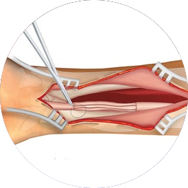 La cirugía consiste en liberar el tendón comprometido, permitiendo su deslizamiento normal dentro de la vaina tendinosa. Es un procedimiento simple, seguro y de corta duración.